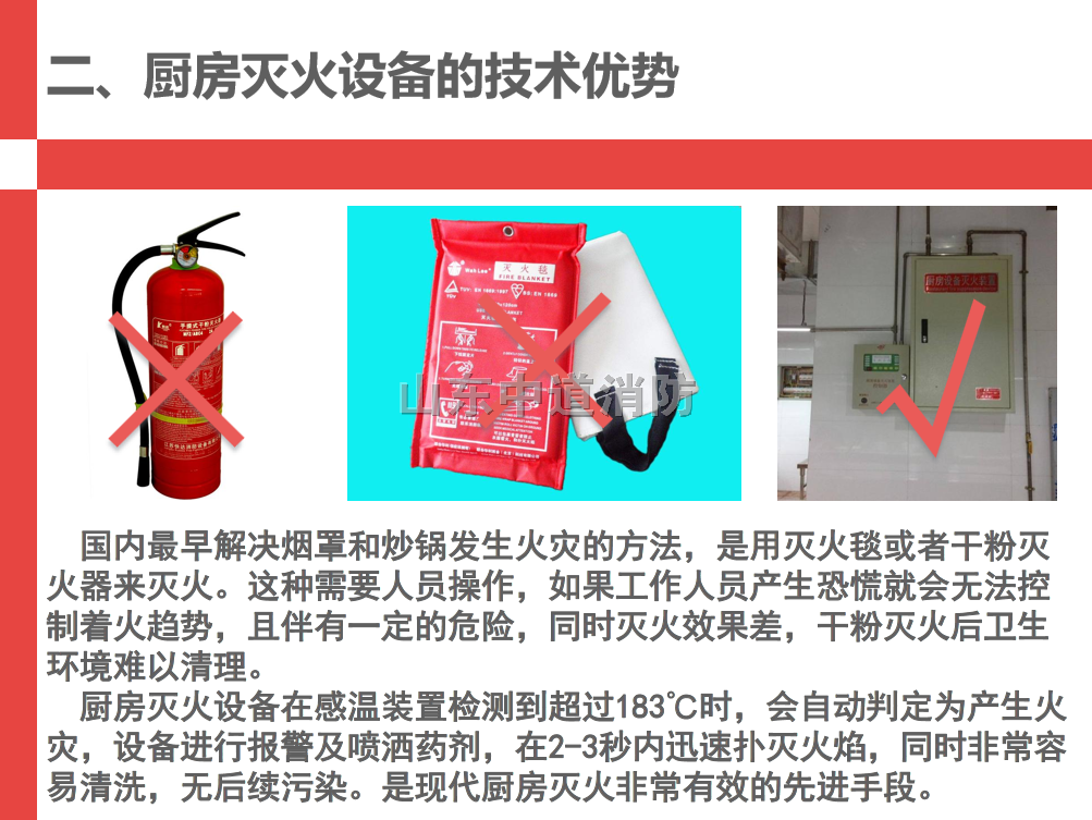 濰坊廚房滅火設備,適用于濰坊賓館、飯店、餐館、機關、學校、企事業單位等公共建筑內的廚房符合以下標準,1、設在地下建筑內的廚房;建筑面積大約等于1000平方的超市內或毗鄰的廚房;高層建筑內,餐廳面積大于等于200平方的廚房;單、多層建筑內,餐廳面積大于等于500平方的廚房。加裝廚房設備自動滅火裝置,聯系電話咨詢客服15094938208.